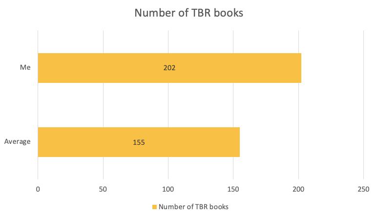Right now I have 202 books on my TBR. I’ve been trying really hard these last few month to keep that number down as much as I can. As for how I feel about it, I love having a big TBR. I tend to read quite a few books simultaneously so I could never survive with a small TBR. Do I wish that number were a little lower? Yes, ideally somewhere around the 100 to 150 mark feels like a good place for me to be.